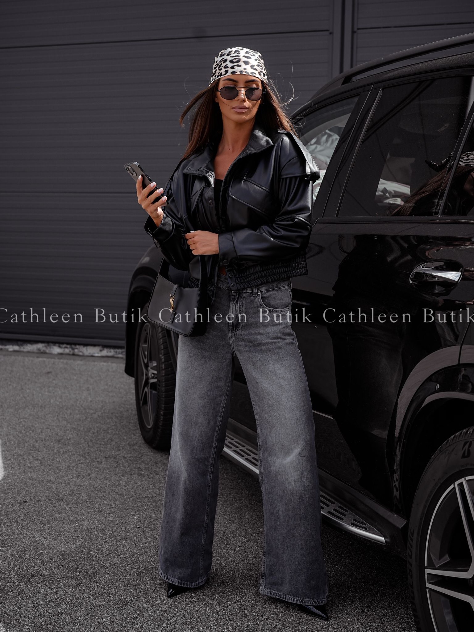 Krótki fason z marszczeniem w pasie pięknie podkreśla talię, a oversize’owe rękawy i strukturalne detale nadają całości nonszalanckiego, modowego charakteru.